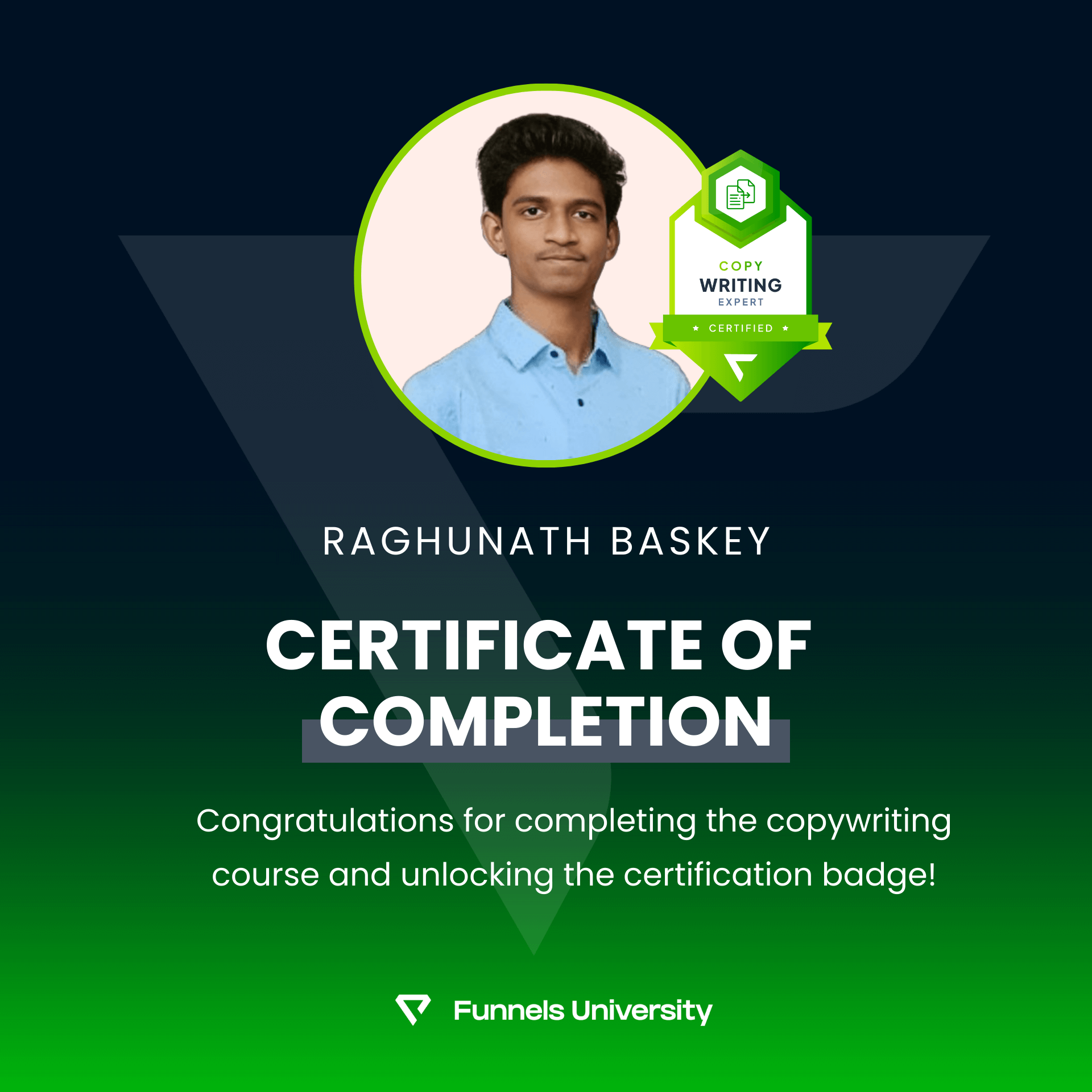 "Whoever wants to use Raghu's services with respect to funnels, website, pages, which he is building, I 100 % recommend him because he is really good at it work.!"